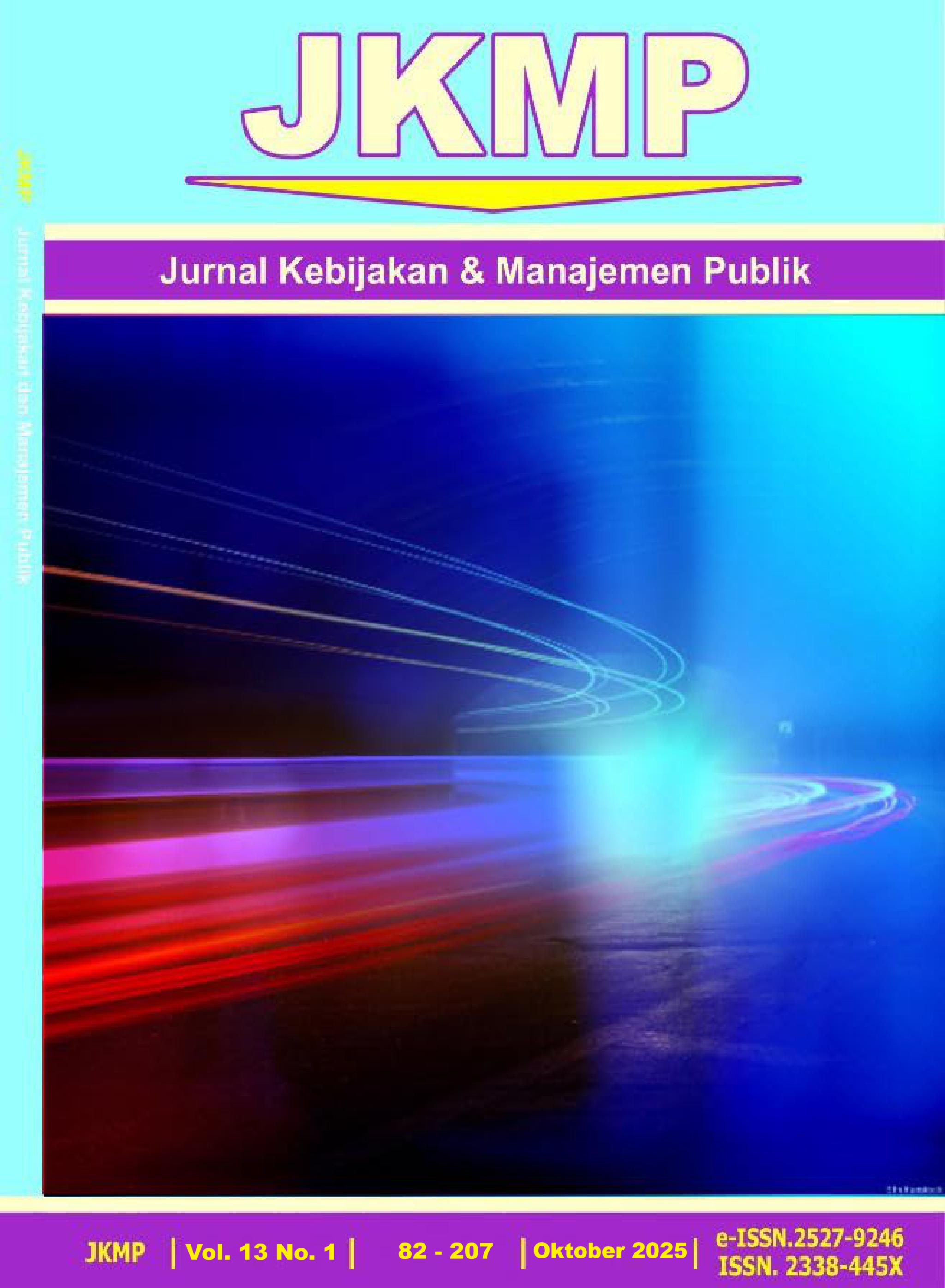 Vol. 13 No. 2 (2025)Volume 13 No. 2 of the Journal of Public Policy and Management (JKMP), released in October 2025, explores the dynamics of contemporary public policy in Indonesia through the lens of actual regulatory implementation. This edition includes an in-depth discussion of the Implementation of Minister of Transportation Regulation No. 24 of 2021 for service improvement at Purabaya Terminal, which uncovers challenges and innovations in public transportation governance, and the Implementation of the Teacher Competency Strengthening Policy through Continuous Competency Development (PKB) based on East Java Gubernatorial Regulation No. 38/2024 in Surabaya, which highlights sustainable education reform. With contributions from researchers from various universities across Indonesia, this publication not only enriches academic discourse through applicable empirical findings but also inspires government practitioners to adopt evidence-based solutions to address issues of the circular economy, environmental management, and more inclusive public services in the research area or even throughout Indonesia.